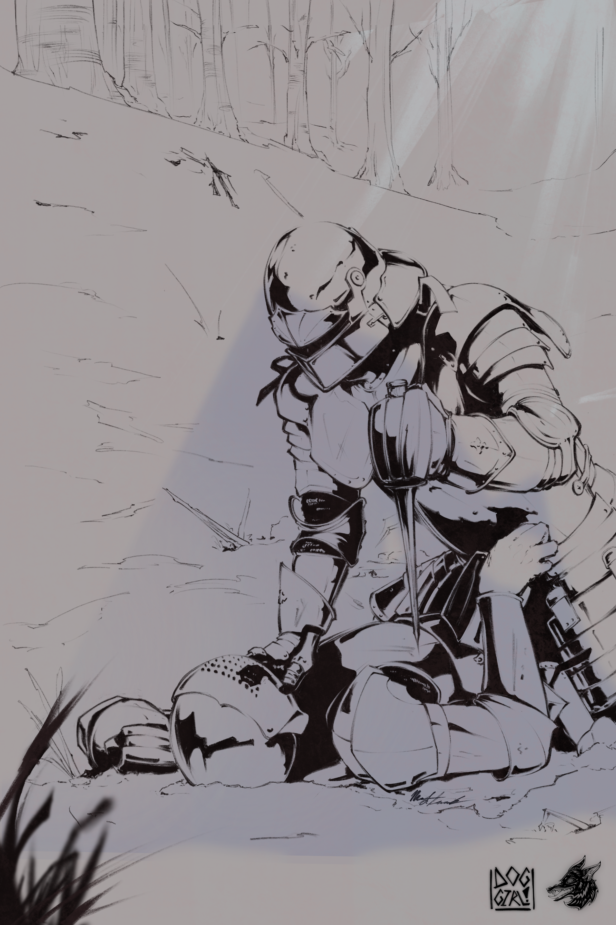 Full timelapse of the piece showcased below, AKA “Knight Fight”.